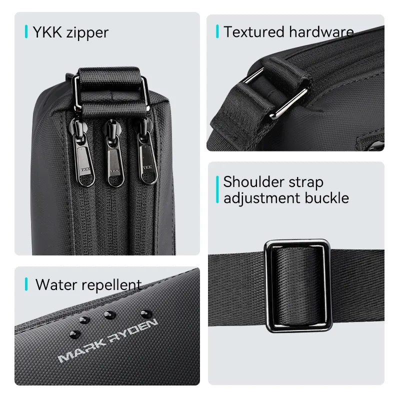 The Mark Ryden Sling Backpack MR7618 is a stylish and functional crossbody bag for men. Featuring a customizable design, USB charging port, and compact yet spacious compartments, it’s perfect for daily commutes, travel, or cycling. Durable, lightweight, and built for modern lifestyles.Product Description