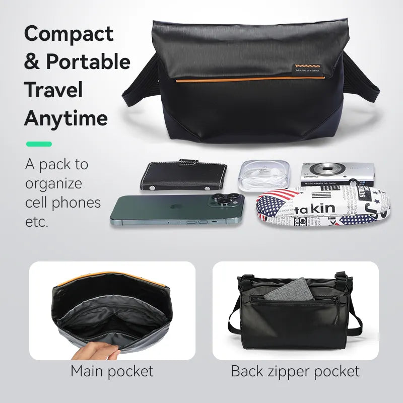The Mark Ryden Sling Backpack MR7618 is a stylish and functional crossbody bag for men. Featuring a customizable design, USB charging port, and compact yet spacious compartments, it’s perfect for daily commutes, travel, or cycling. Durable, lightweight, and built for modern lifestyles.Product Description