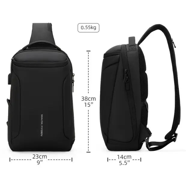 The Mark Ryden Sling Backpack MR7618 is a stylish and functional crossbody bag for men. Featuring a customizable design, USB charging port, and compact yet spacious compartments, it’s perfect for daily commutes, travel, or cycling. Durable, lightweight, and built for modern lifestyles.Product Description