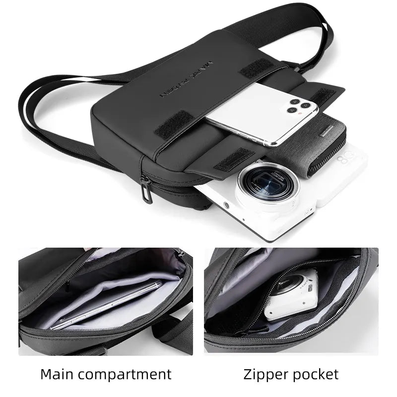 The Mark Ryden Sling Backpack MR7618 is a stylish and functional crossbody bag for men. Featuring a customizable design, USB charging port, and compact yet spacious compartments, it’s perfect for daily commutes, travel, or cycling. Durable, lightweight, and built for modern lifestyles.Product Description