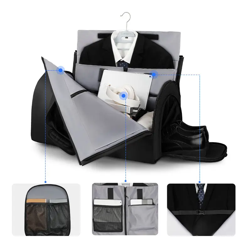 Organized Packing: Multiple compartments for clothes, shoes, toiletries, and tech accessories ensure everything has its place.